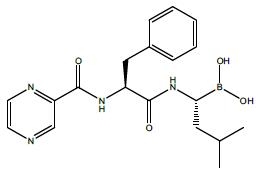 | 【成份】 | 本品主要成份为硼替佐米。 化学名称:[(1R)-3-甲基-1-[[(2S)-1-氧-3-苯基-2-[(吡嗪羧基)氨基]丙基]氨基]丁基]硼酸。 化学结构式: