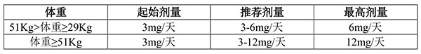 必须根据患者肾功能情况进行个体化的剂量调整。对于轻度肾损害的患者来说(肌酐清除率:50 mL/min 至<80 mL/min),推荐起始剂量是 3 mg,一日一次,随后可基于临床疗效和耐受情况增加至最大剂量 6 mg,一日一次。对于中重度肾损害患者而言(肌酐清除率:10 mL/min 至<50 mL/min),推荐起始剂量为 3 mg 隔日给药,进行临床评价后可增加至 3 mg 每日一次。因为本品尚未在肌酐清除率<10 mL/min 的患者中进行研究,因此不推荐此类患者使用本品。